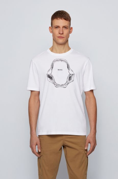 Boss Pima Cotton Relaxed Fit T Shirt With Shark Jaw Print