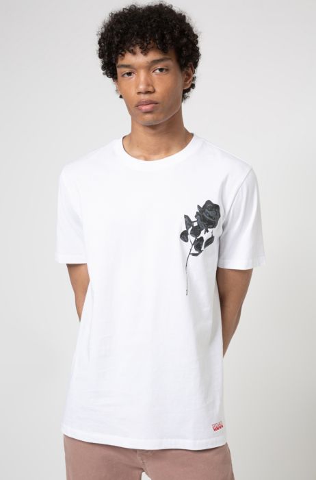 Hugo Regular Fit T Shirt In Organic Cotton With Rose Print